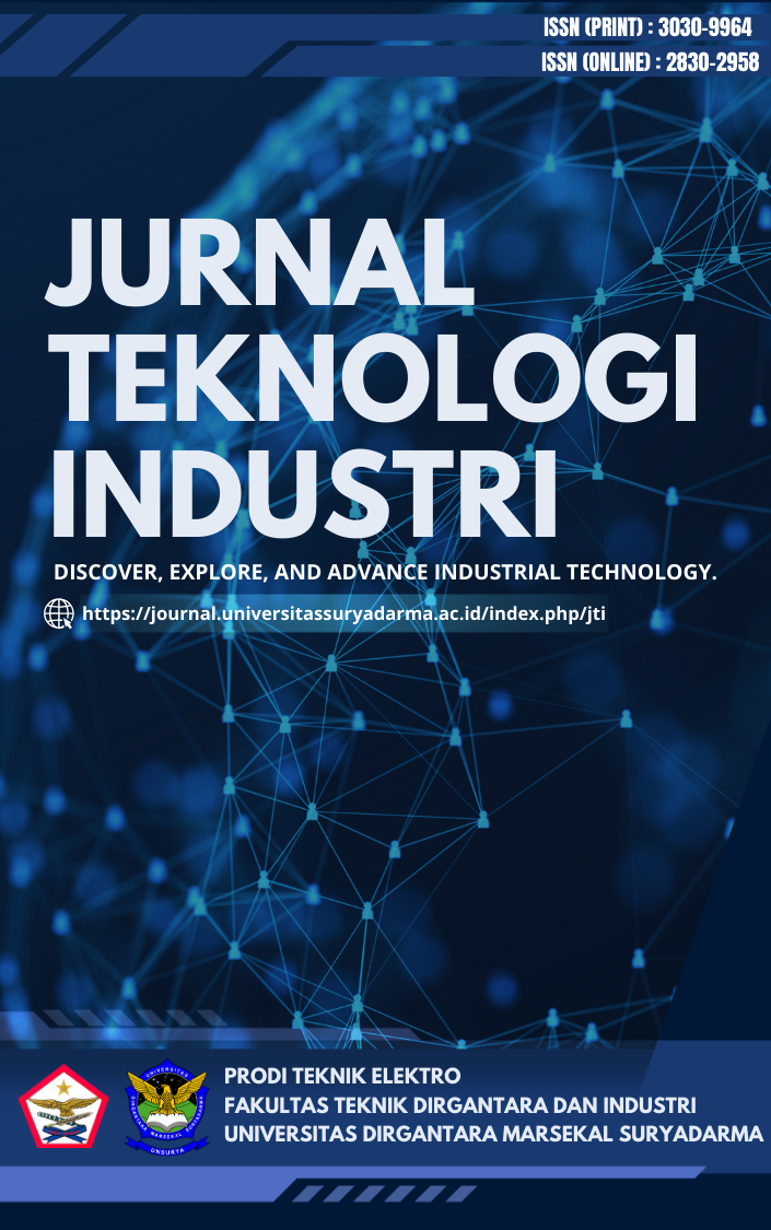 Jurnal Teknologi Industri is a scientific journal managed by the Electrical Engineering Study Program, Faculty of Aerospace and Industrial Engineering, Universitas Dirgantara Marsekal Suryadarma. The journal serves as a strategic platform for researchers, academics, and professionals to publish high-quality scholarly works in the fields of electrical engineering, industrial technology, and technological innovations supporting general industries as well as the aerospace sector.